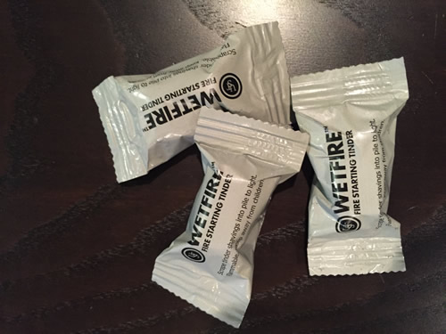 Wetfire Fire Starting Tinder: A commercial product that you scrape shavings into a pile to light. These are super effective and again easy to carry.